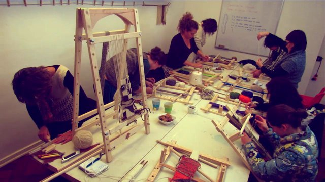 He realizado talleres desde el año 2006, cuando unas compañeras de Universidad me pidieron que les enseñara a tejer a telar. La cosa no paró desde ahí y de la casa de mis padres pasé a un taller y luego a la Casa de Oficios, llegando a compartir con más de 200 mujeres en torno a esta linda técnica de tejido.